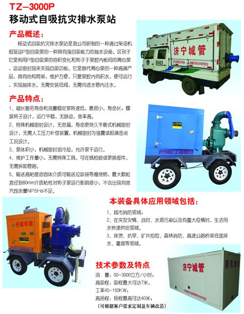 TZ-3000P移動(dòng)式自吸抗災(zāi)排水泵站